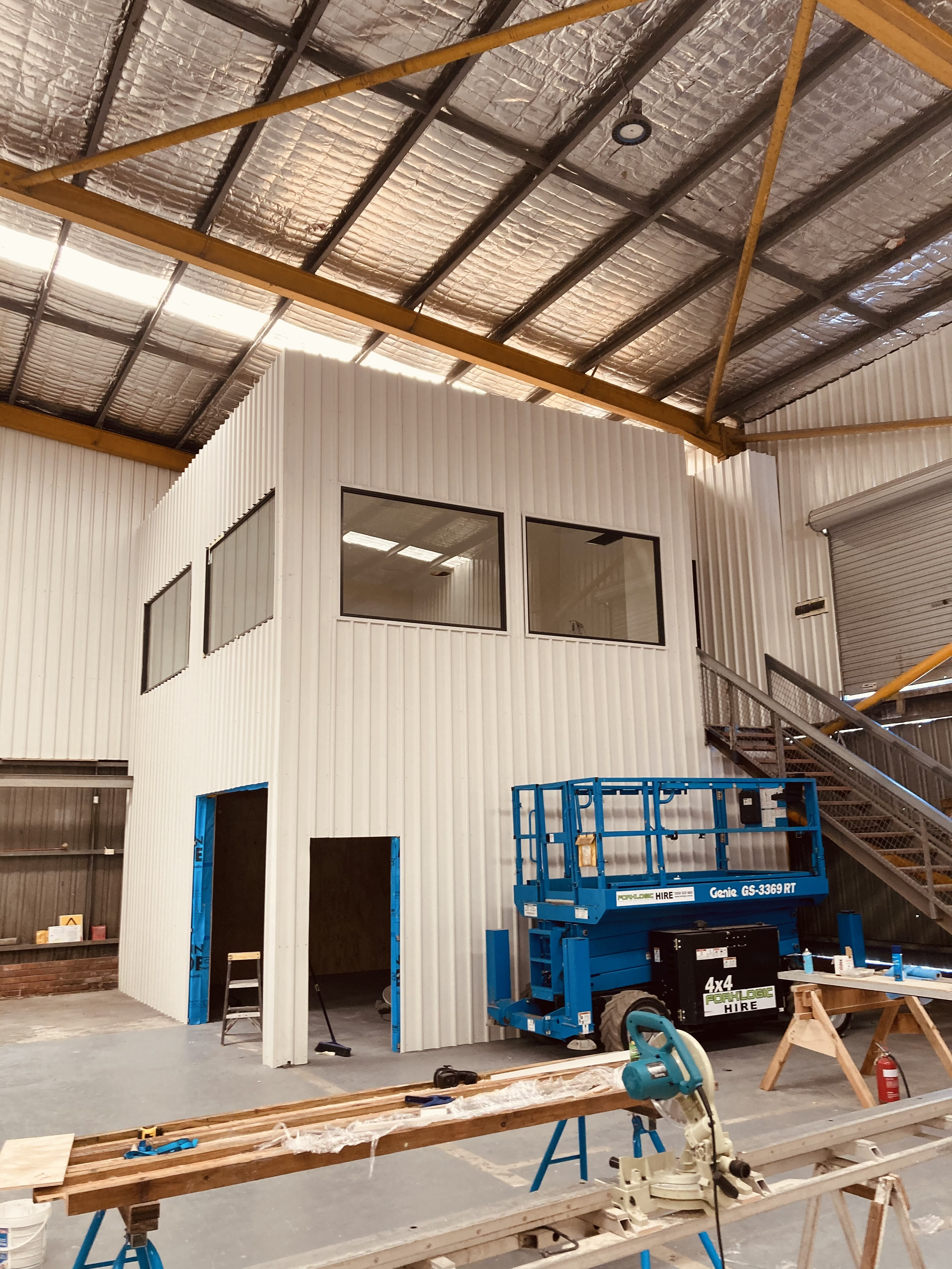 Glass factory office and storage room fabrication. From Demo, Cutting the existing Steel away from the area, to laying skirting in the office; this was a job that covered all the bases.