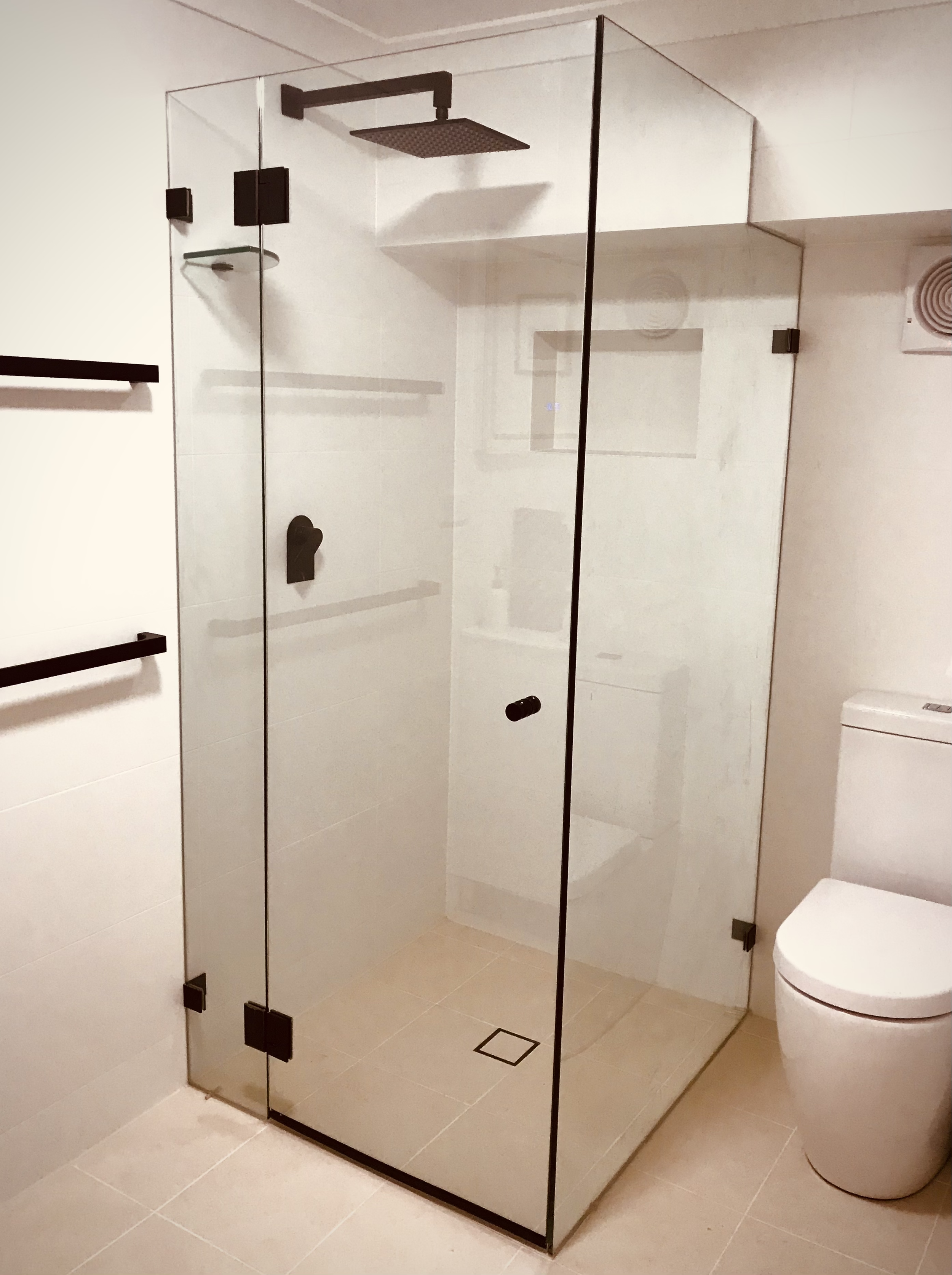 Custom frameless shower installation.