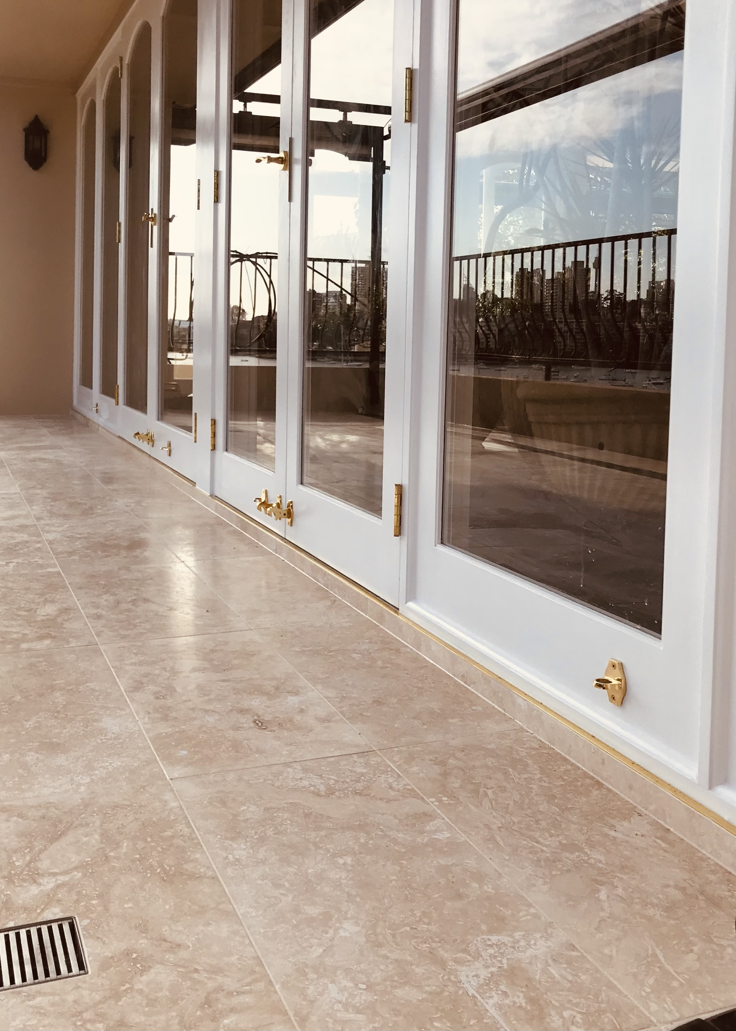 New balcony following ripping up to rectify 'concrete cancer', followed by re-tiling and installation of new French Doors.