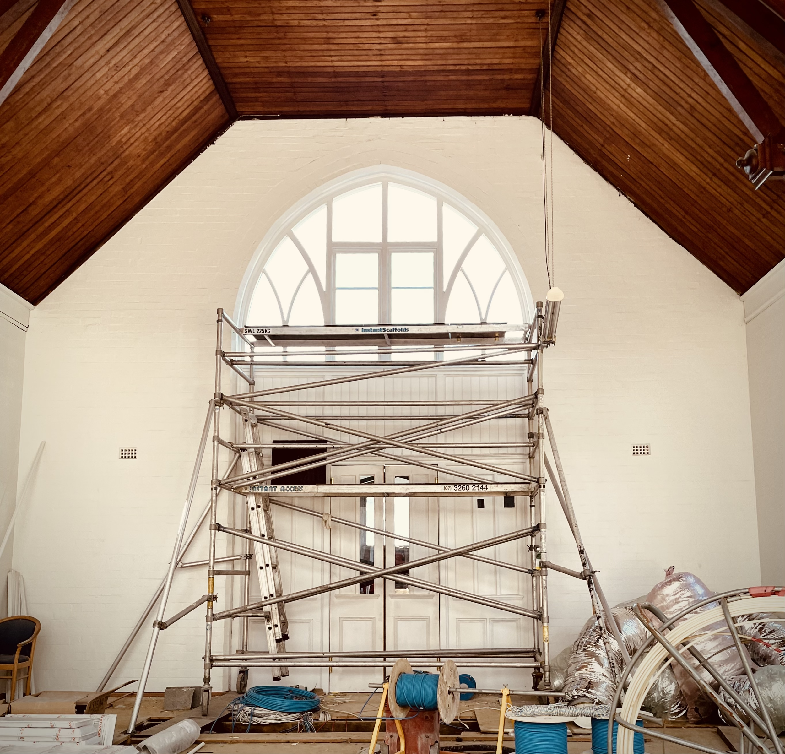 Progress shot on first day at Heritage Church. Trying to repurpose original bearers that were left strewn across site. Progress....